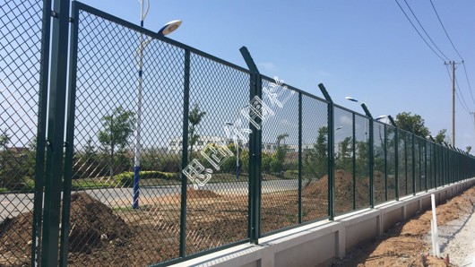 保稅區(qū)圍欄網(wǎng)孔菱形狀,堅固美觀,不容易變形。防攀爬性好。表面采用浸塑處理,防銹時間長,鋼板網(wǎng)圍墻通風(fēng)性能好,安裝方便。